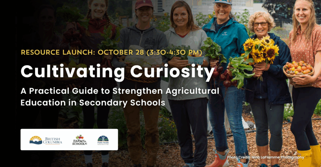 Let’s Celebrate! The Great B.C. School Food Cook-OffDate: April 17, 2025 Check out this informative webinar, which explores new resources that connect classrooms to B.C. foods, agriculture, and a brand new 100+ page cookbook showcasing recipes from schools from all over the province. The book is designed to invigorate school meal programs and inspire chefs to get creative in the kitchen. Additionally, the webinar will introduce a new series of activity sheets, informational posters that showcase B.C. producers and processors, and educational scrolling slideshows that can be shown in your schools – all of which connect to each other and offer curriculum connections for teachers. π Watch the recording on YouTube: Click here